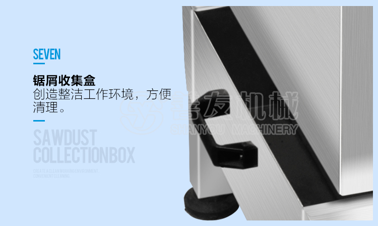 有锯末收集盒、避免浪费,内部平滑,便于清洁:自动锯骨机内置式钨钢导向块,降低磨损机器,使用寿命更长久。