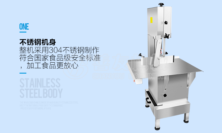 立式锯骨机加工产品厚度可调节:可适应不同客户订单。自动锯骨机带有手柄操作,可保证工人的操作安全。采用最新技术和全不锈钢制造(适应各种加工环境)。电机、驱动机构布置精确合理,动力强大,同时可以让运转更平稳可靠。锯条的上侧和下方均布置有合金导向块,立式锯骨机价格非常具有性价比、使锯条运行平直,运行稳定可靠。